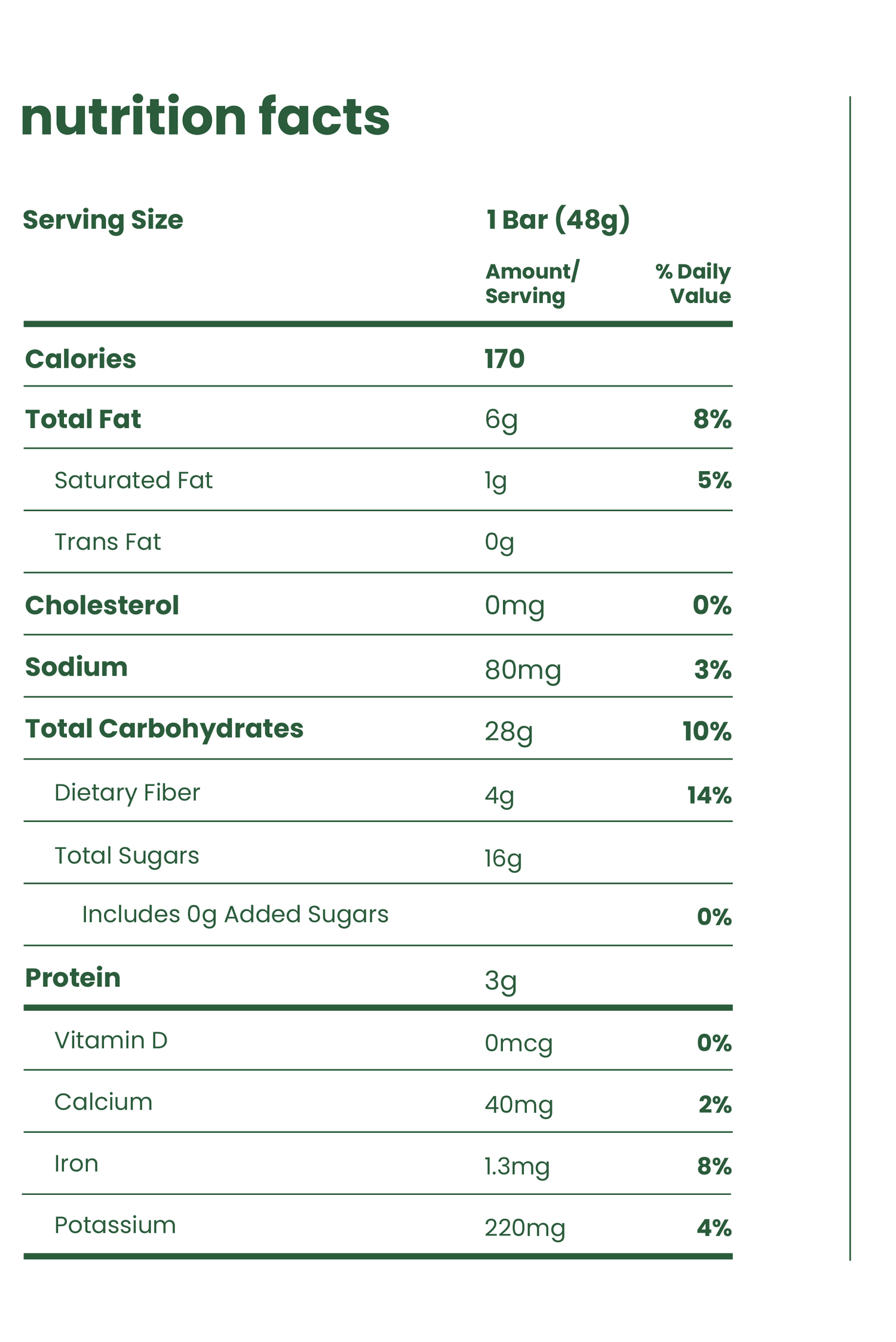 Ingredients: dates, sunflower butter, sunflower seeds, dried blueberries, dried cranberries, dried strawberries, dried raspberries, chia seeds, pomegranate powder, turmeric, tart cherry powder, vanilla extract, rhodiola rosea, mixed berry flavor, sea salt, bacopa powder
